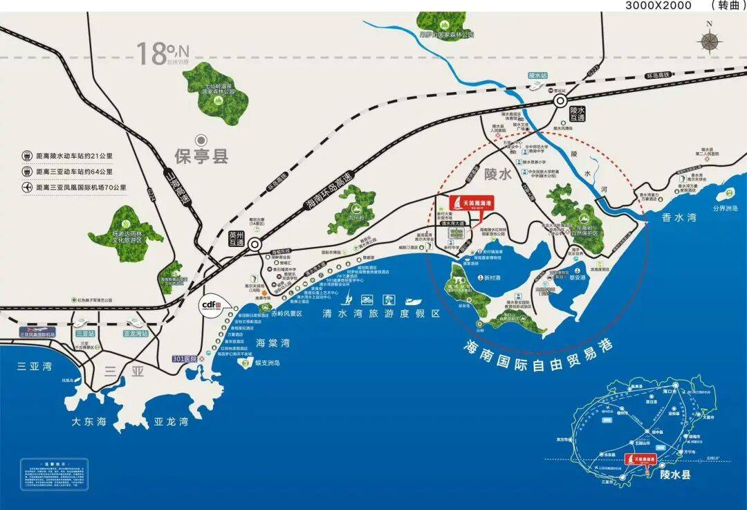 区域枢纽,高效通勤: 至陵水动车站约14公里,便于全岛高铁出行;距黎安港仅6公里,坐享滨海资源。