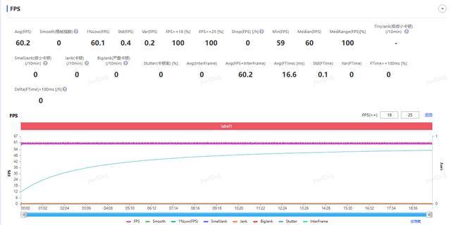 同样的表现也延续到了《原神》上,最高画质跑图20分钟,平均帧数达到了60.2FPS,稳帧指数同样是0,1%low帧达到了60.1,可以说整个游戏流程几乎不存在掉帧这一说法。