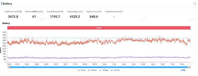 平均功耗为3.67W,每帧能耗为61mW,在基础的游戏功耗上来后,幻影稳帧和小风扇的功耗占比就下降了,在这里几乎可以说是忽略不计的状态。