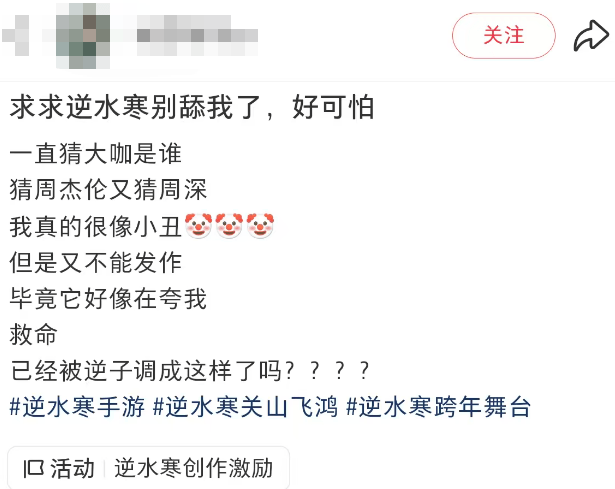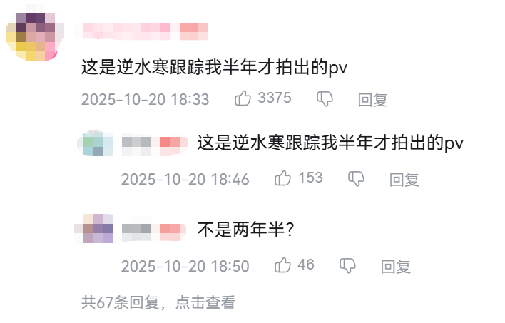 很多玩家都在用非常RPG本质的精神,来表达对这支PV的喜爱,比如说“这是跟踪我拍出来的PV”,但考虑到《逆水寒》演唱会把玩家放C位上的行为,这个猜想又并非没有缘由。