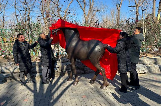 当日上午,园区入口处红灯笼高悬、喜庆装饰点缀,工作人员面带笑容迎接每一位游客的到来,一句句“新春快乐”“马年吉祥”的问候,让游客刚入园就感受到满满的暖意。随着马年生肖揭牌仪式正式启动,园区负责人为马年生肖景观揭牌,红绸落下,寓意“马到成功、万骏臻福”的生肖造型惊艳亮相,引得现场游客纷纷驻足拍照留念,定格新春美好瞬间。