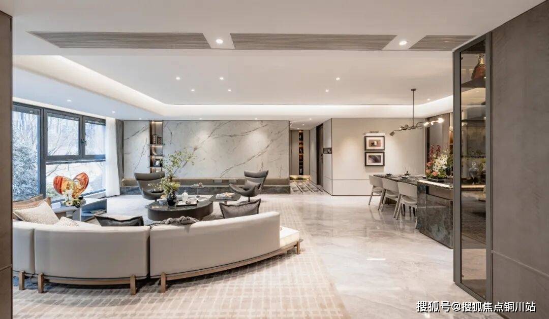 方厅LDKG:整体户型设计中,约60%是社交空间,40%是居住空间,保证业主在家中也能平衡生活与事业,是为徐州CBD大老板定制的大平层。